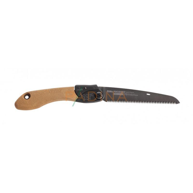 Gomboyeva gumena drška osigurava sigurno i udobno držanje. Otvor na ručki omogućuje pričvršćivanje užeta ili karabinera. Kada je presavijen, zubi Gomboya potpuno su skriveni unutar drške. Stoga pilu možete spremiti u ruksak.