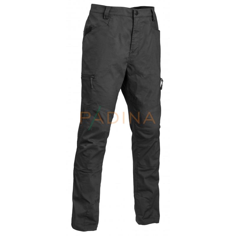 Hlače od lagane rastezljive ripstop tkanine, s omčama za remen i elastičnim pojasom, kopčanjem na preklop s patentnim zatvaračem i gumbom na remenu.