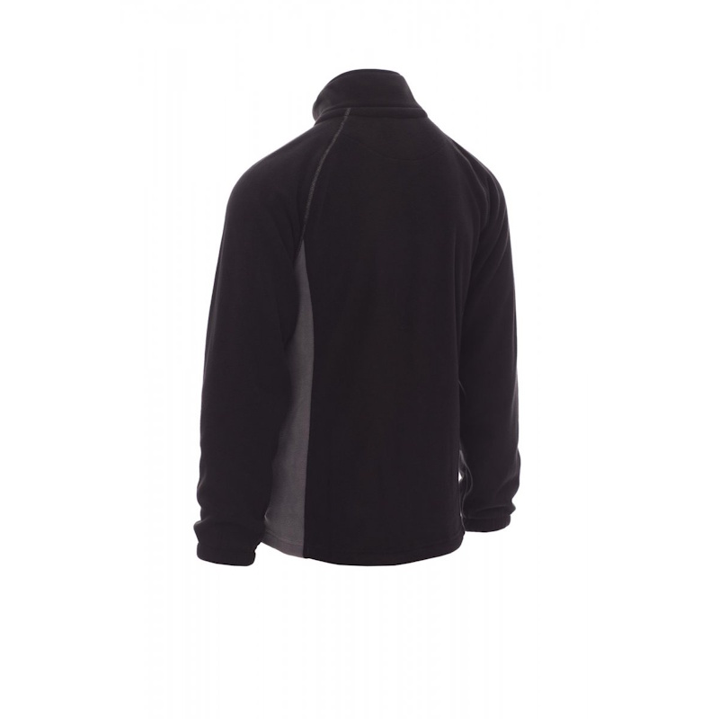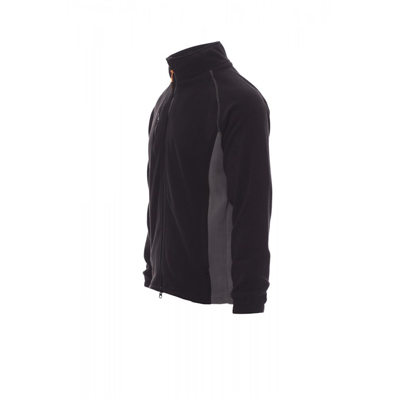 Muška dvobojna flis jakna, s crnim plastičnim patentnim zatvaračem od 8 mm, raglan rukavima, podesivim vezicom u struku, elastičnim manžetama, dva džepa sa skrivenim patentnim zatvaračem, jednim prednjim džepom s patentnim zatvaračem, ovratnikom s kontrastnom trakom za pojačanje, ojačanim šavovima.