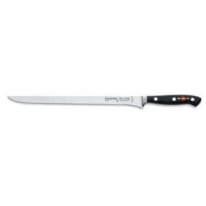 Klasika i srce profesionalne kuhinje. Kuharski nož iz serije ProDynamic najvažnije je kuhinjsko pomagalo za svestranu uporabu. Sa svojim nožem dugim 26 cm savršen je za rezanje bilja, povrća, mesa i ribe. Zakrivljeni rezni rub olakšava rezanje ljuljanjem. Ergonomski oblikovana puna plastična ručka i kvalitetna oštrica karakteriziraju noževe iz serije ProDynamic. Neklizajuća, crna ručka savršeno leži u ruci i povezana je s oštricom posebnim postupkom bez praznina. Cijela se oštrica može ponovno naoštriti. Oštrica je izrađena od čelika X55CrMo14. Uravnotežena tvrdoća od 56 ° HRC idealan je kompromis za savršeno zadržavanje rubova i jednostavno oštrenje. Proizvedeno u Njemačkoj.