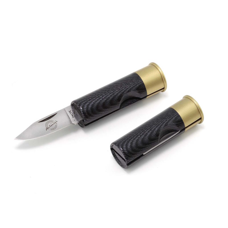 Oblikovan kao pravi “44 Magnum” metak, ovaj nož ima ručku od lijevanog metala s pravim pozlaćenim i simulirani olovni vrh.
